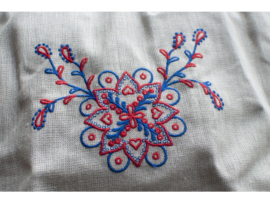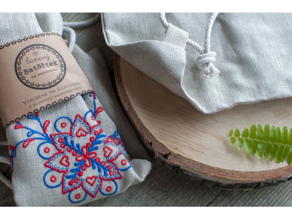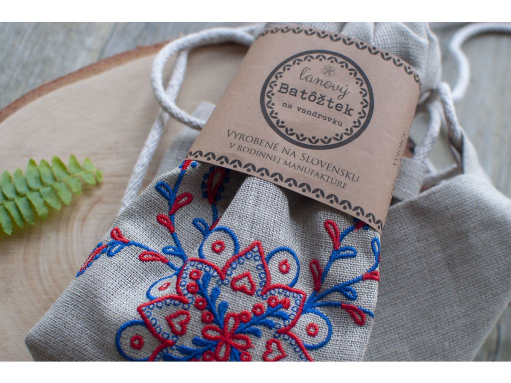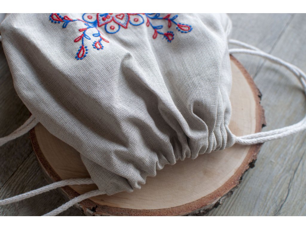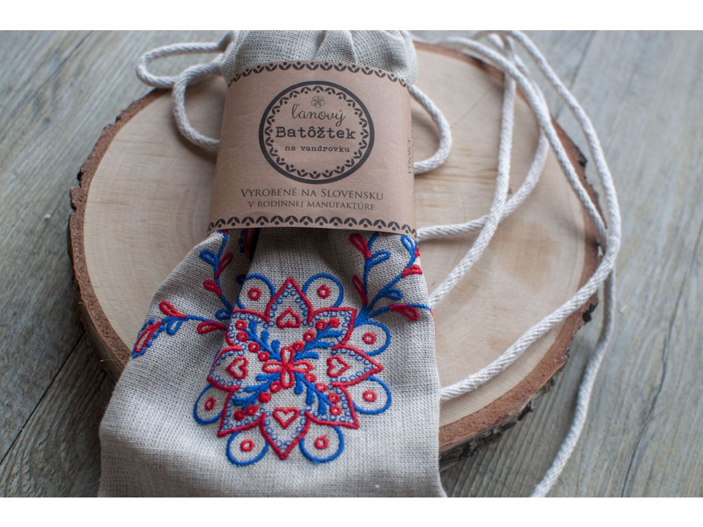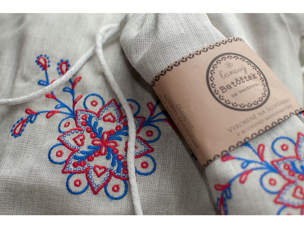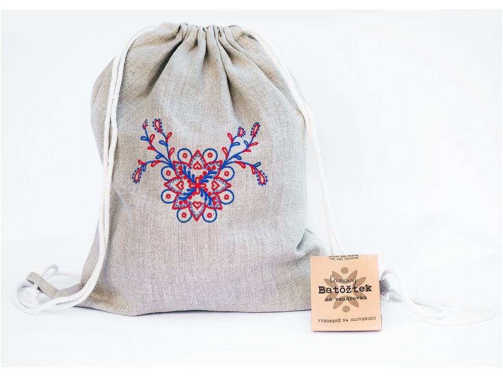 ࿔ tento praktický ľanový batôžtek má na prednej strane vyšívaný Folklórny kvet