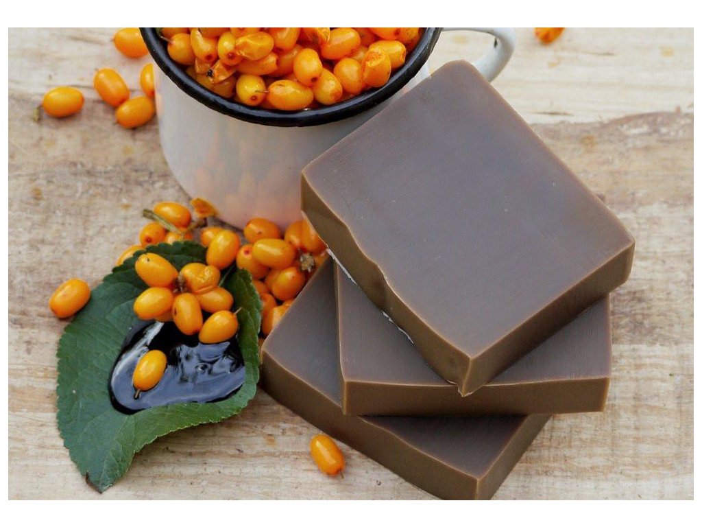 Mydlo obsahuje tiež extrakt z rakytníka, ktorý pomáha zvláčniť a chrániť pokožku a je bohatý na vitamín C a antioxidanty.