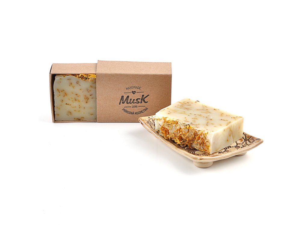 Prírodné mydlo s včelím voskom a extraktom nechtíka lekárskeho s príjemnou sviežou kvetinovo-bylinnou vôňou pochádza od slovenskej značky MusK.