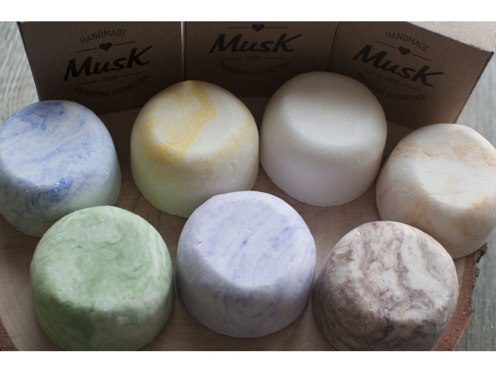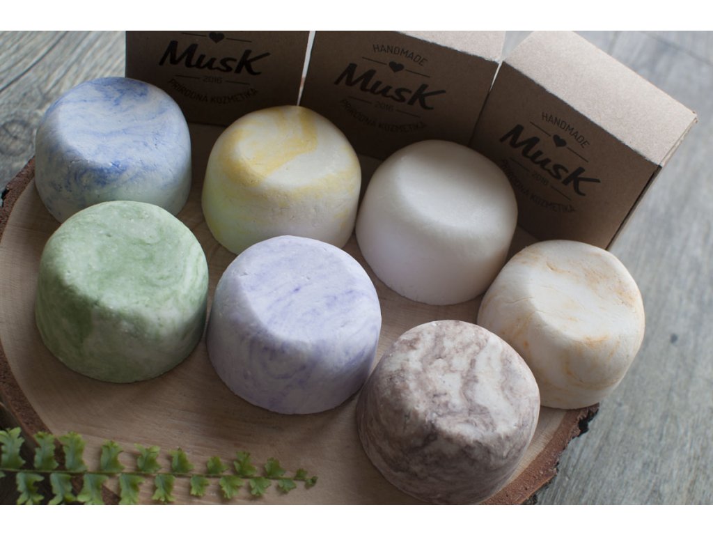 Okrem úžasných prírodných mydielok sú v ponuke značky "MusK" aj tenzidové tuhé šampóniky, prírodné oleje a drevené mydelničky.