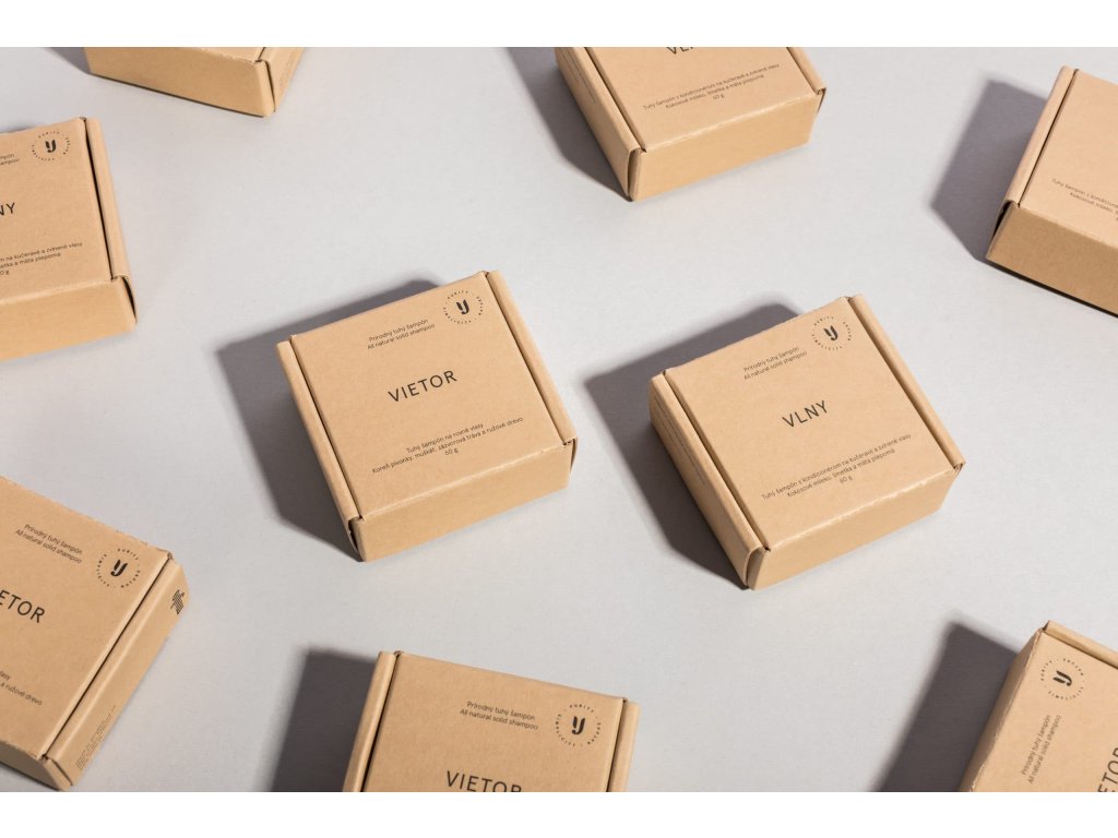Tuhý šampónik je balený ekologicky, v hnedej papierovej krabičke.