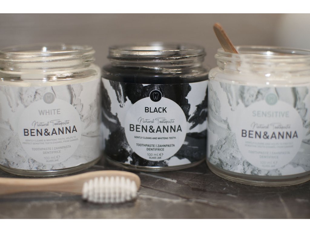 Zubné pasty BEN & ANNA majú čisto prírodné zloženie a sú vhodné aj pre vegánov. Pasty sú bez parabénov, ftalátov, mikroplastov a triclosánov. Tieto pasty sú na rozdiel iných prírodných pást na trhu balené ekologicky, v papierovej krabičke a sklenenej nádobke s kovovým viečkom. V balení sa nachádza aj malá bambusová špachtlička na praktické naberanie pasty. Po vypoužívaní pasty Ti nezostane žiadny plastový obal, ktorý skončí v koši. Sklenenú nádobku môžeš využiť na výrobu domácej prírodnej kozmetiky, zdravej sviečky, na uskladnenie korenín či rôzych iných drobností.