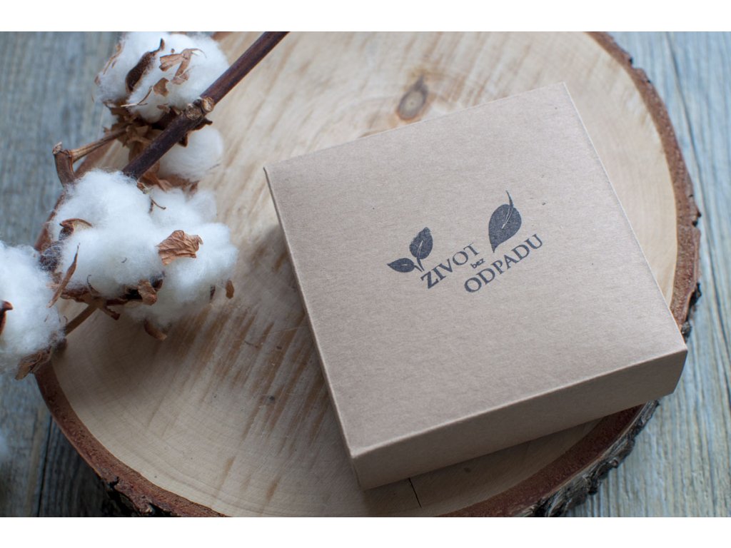 Obal: 100 % papierová krabička + etiketa z recyklovaného papiera / recyklovateľná