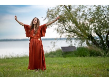 Letné šaty nad kolená prevažne z prírodného materiálu od značky Anna Suno sú vyrobené, farbené a zdobené ručne. Šaty sú vzdušné a vďaka šnurovačke na chrbte, ktorou sa...