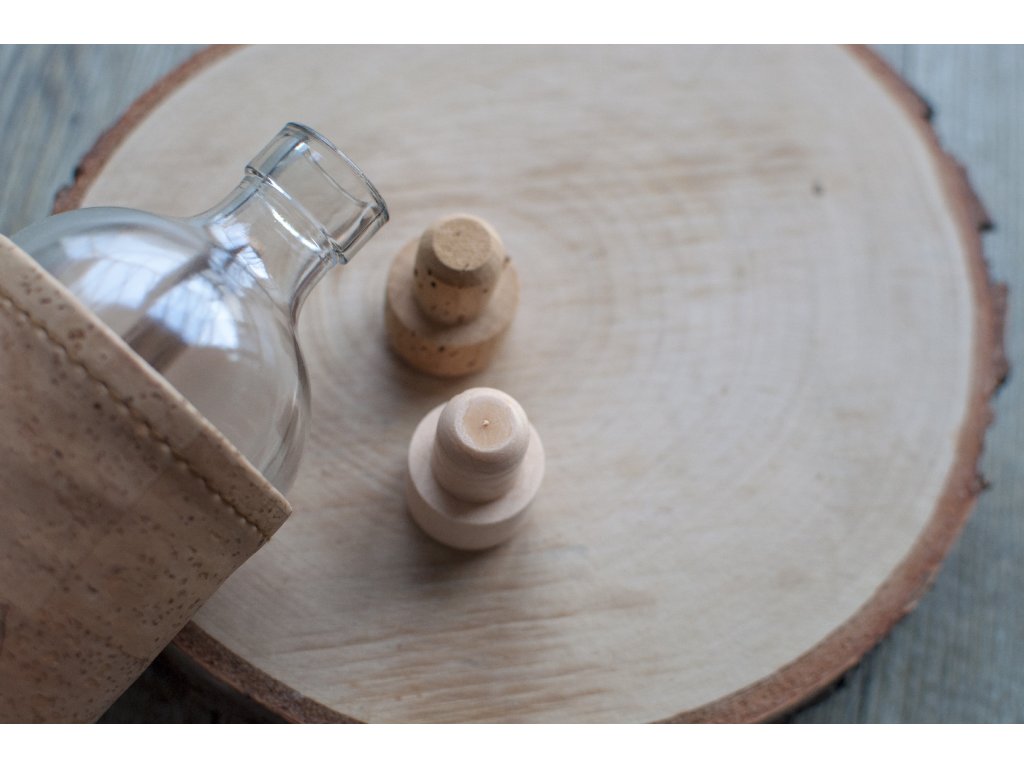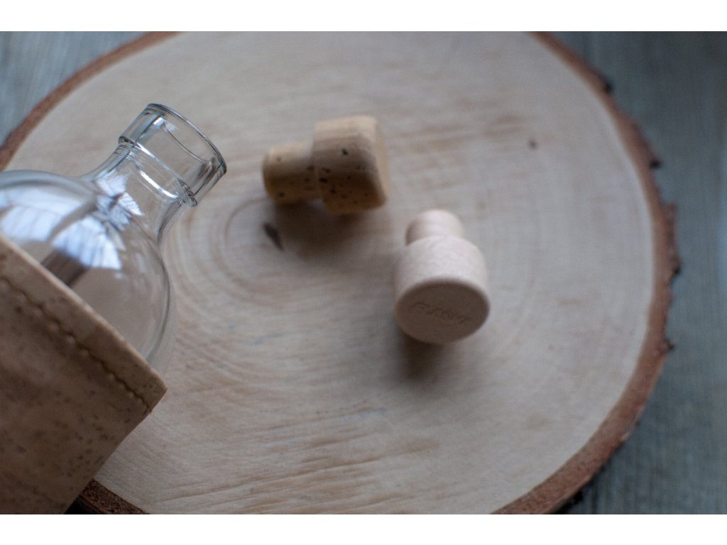 každá fľaša má korkový štuplík, a zároveň náhradný štupel z expankorku (napodobenina korku, používaná aj na vínach)