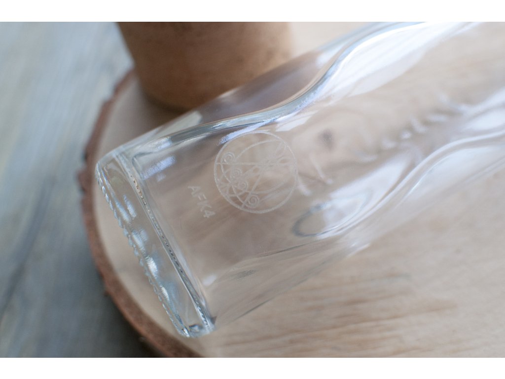 Flaška predstavuje nádhernú ekologickú slovinskú značku, ktorá vyrába sklenené fľaše, poháre a šálky, ktoré štruktúrujú vodu.