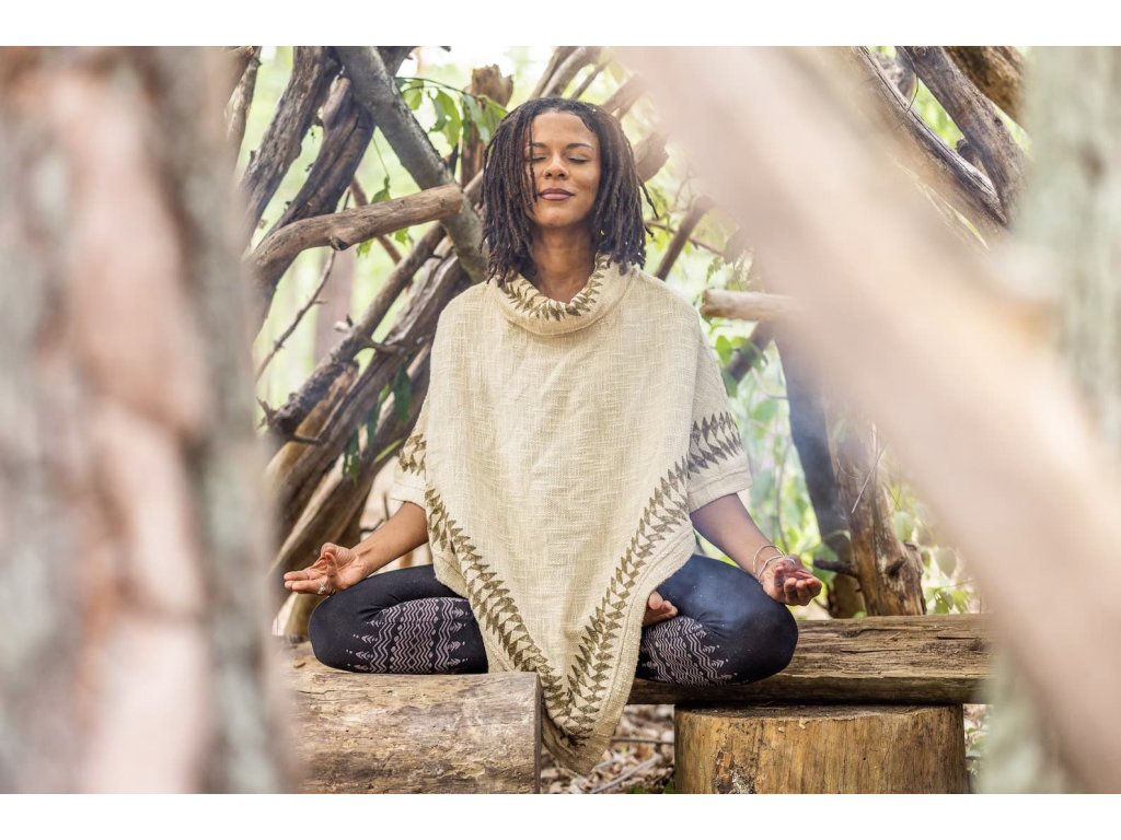 Toto krásne originálne Tribal pončo je vyrobené z čisto prírodného materiálu zdobeného prírodnými farbami. Bavlnená látka je hrubšia a odolná, no stále veľmi jemná. Pončo je zdobené starodávnou ručnou technikou "hand block print", a to hnedou prírodnou farbou. Odtieň každého ponča sa môže jemne líšiť, každé jedno je úžasným originálom.
