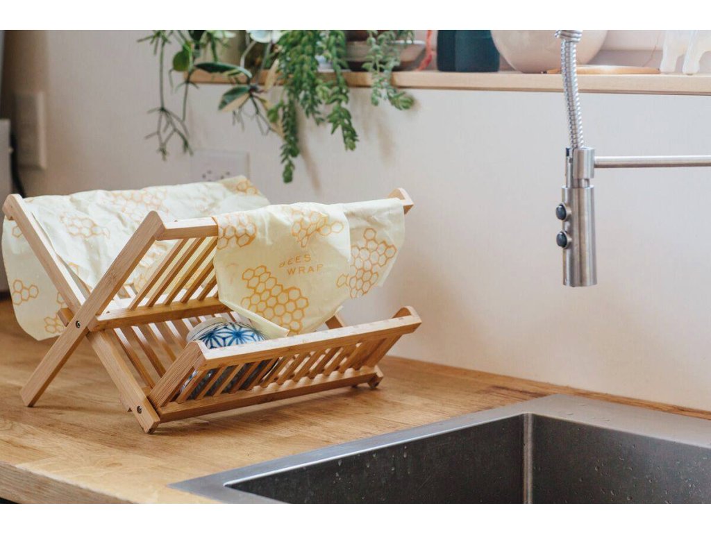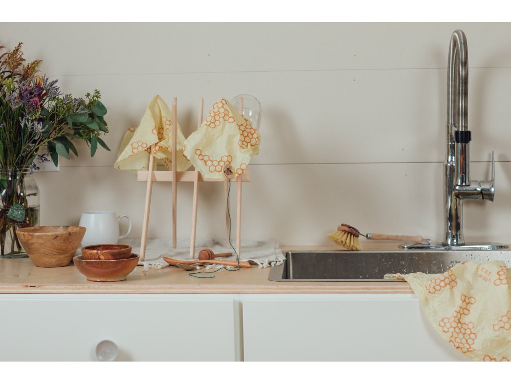 ࿔ nechaj Bee’s wrap dobre vyschnúť, zaves alebo ulož ho na odkvapkávač riadu, po vyschnutí poskladaj a odlož