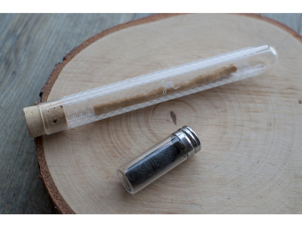 sklenené puzdro vyrobené z tradičného českého skla s korkovou zátkou